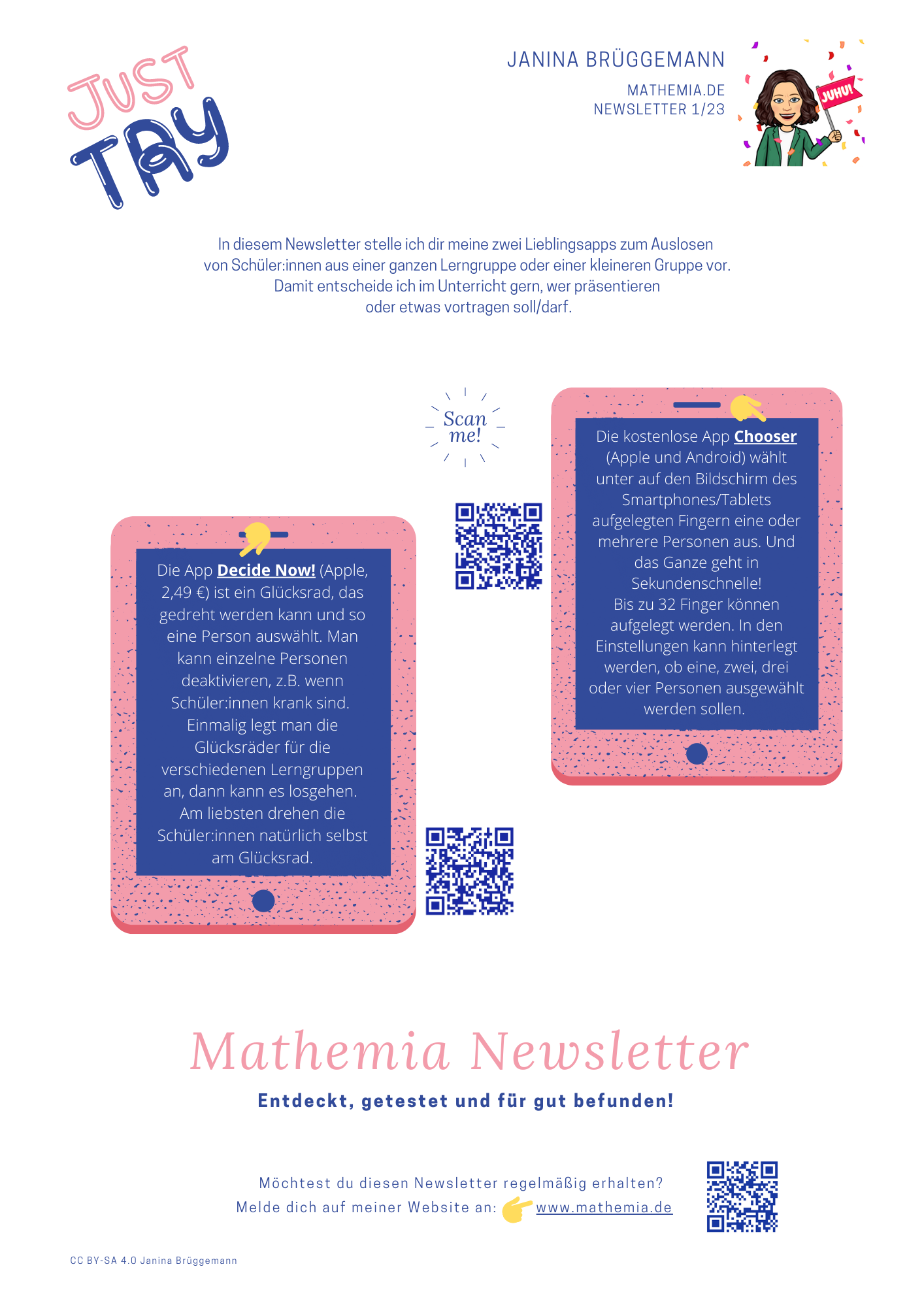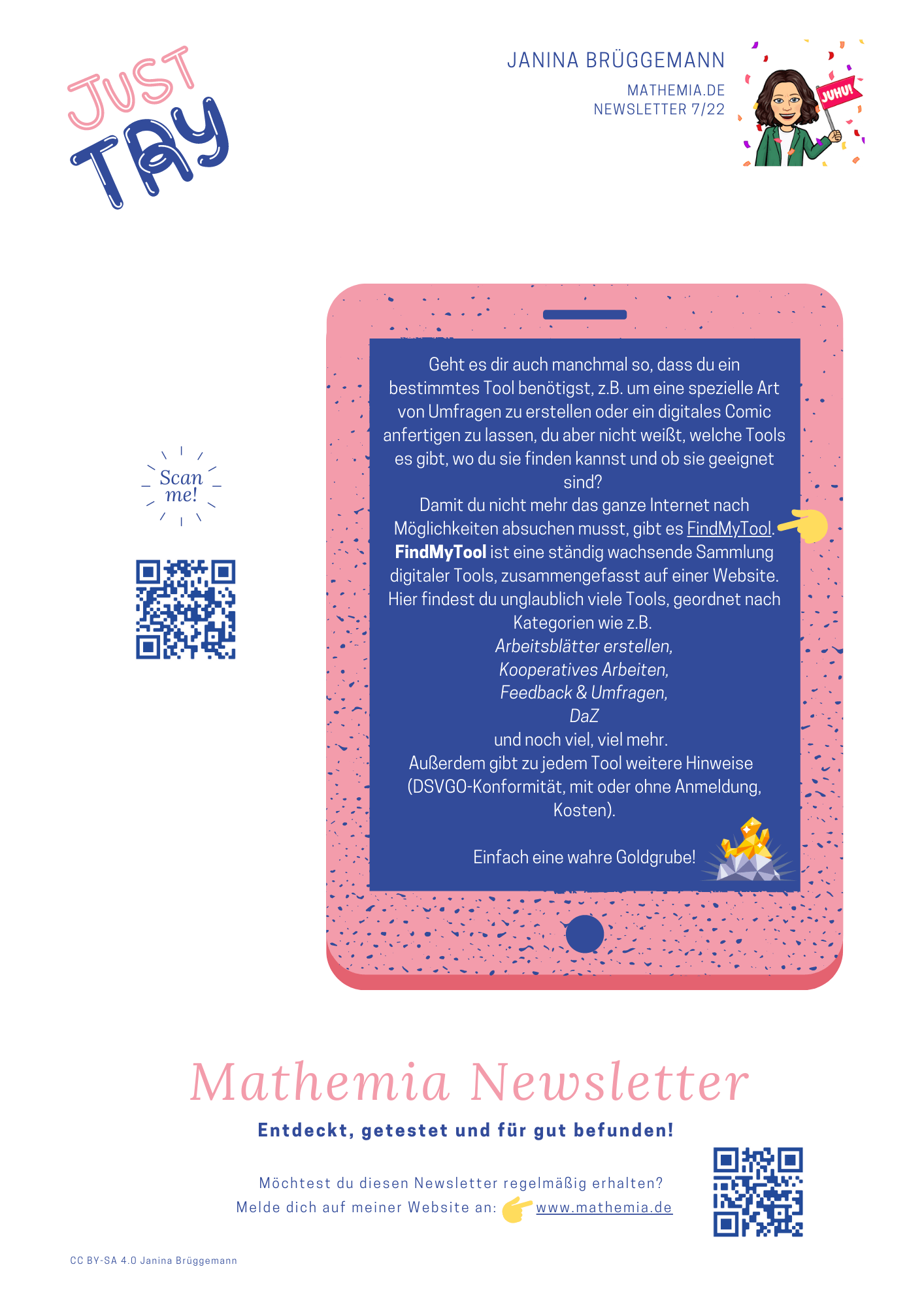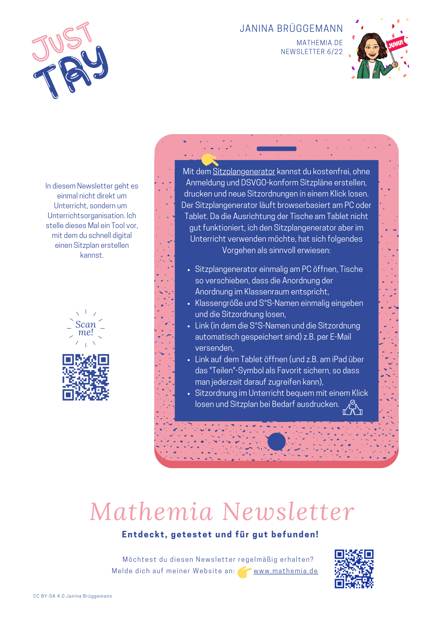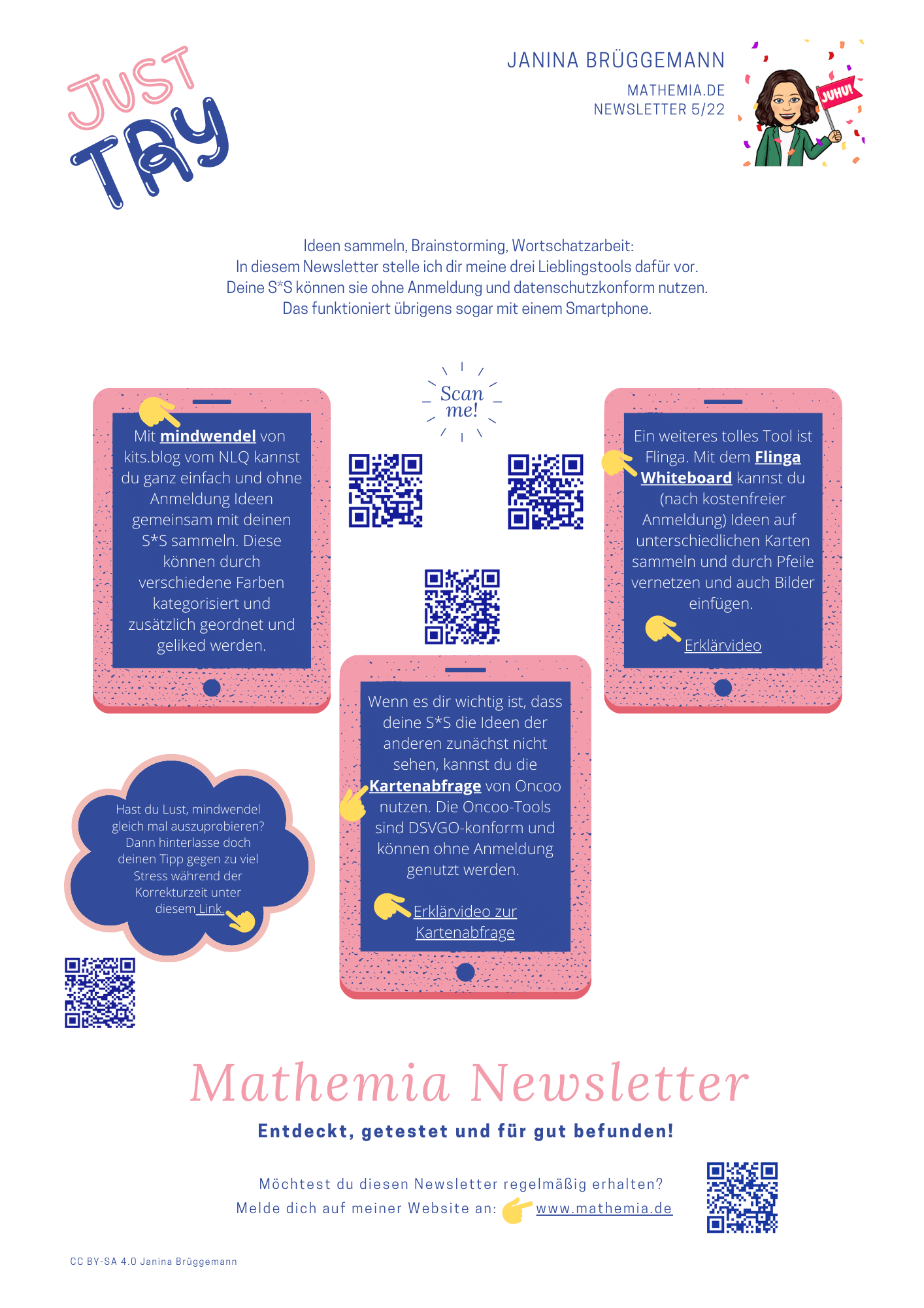 Im Mathemia Newsletter gebe ich Tipps zur digitalen Bildung. Es geht um digitale Tools, neue Arbeitsformen, Aufgabenformate, Unterrichtsideen und Denkanstöße. Der Newsletter ist nicht speziell für das Fach Mathematik gedacht, sondern fächerübergreifend. Alle bereits erschienenen Ausgaben können hier eingesehen und downgeloadet werden.